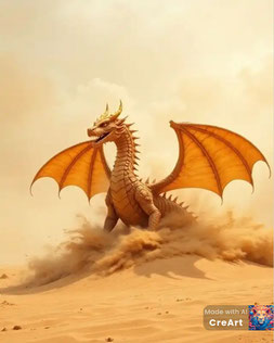 * Le dragon du desert , donnant une consistance et une orientation délibérée et maitrisée à la fureur des tempêtes de sable